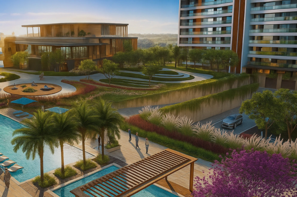 M3M GIC Manesar is designed as an eco-friendly, integrated city focusing on sustainable, low-carbon living, featuring extensive green landscapes, forest-themed areas, and specialized pedestrian/cycling paths.